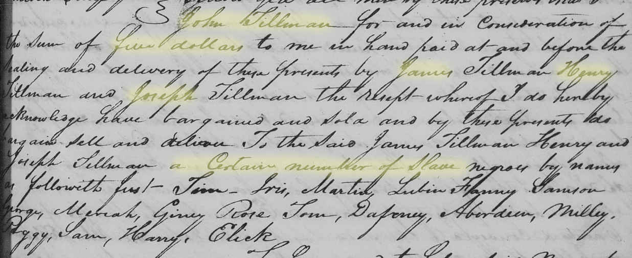 Who is On 18 January 1819 in Bulloch County, Georgia, 648John Tillman sold 18 slaves to (collectively) James, Henry, and Since 648John sold the slaves at an extremely undervalued price, and since the buyers are introduced as a collective without specifying who was to receive each slave, the deed very strongly suggests a family relationship, likely a father-sons relationship. ![]() |