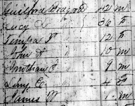 Is As you can see above, in 1850 70Gilford and 71Lucinda had a daughter named "Penop Ann P [Bedgood]," ... but in the 1860 census, 70Gilford doesn't have a daughter named Penelope, Ann, or anything of the sort. Perhaps she had died, and perhaps |