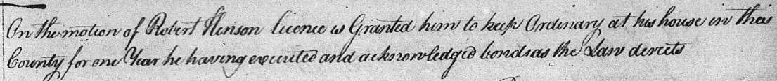 In November 1773 he was licensed to operate an "ordinary," which was basically a restaurant and/or inn.